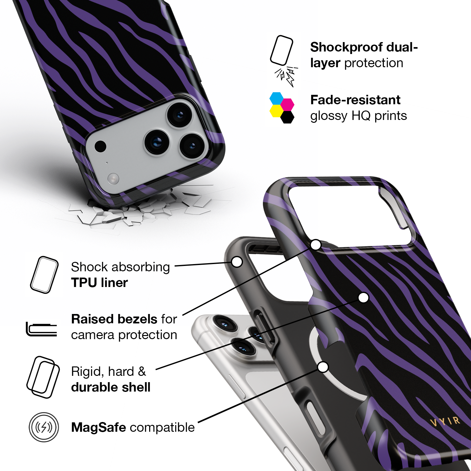 Zebra Luxe, Violet - Shockproof MagSafe iPhone Case